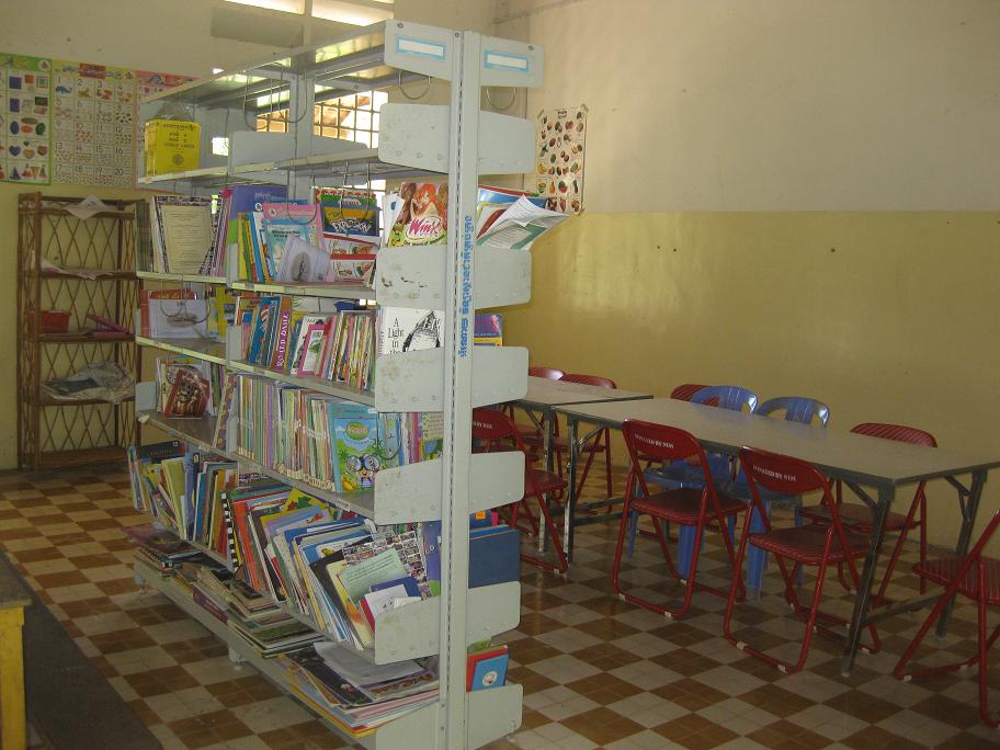L'actuelle bibliothèque : les tables sont trop hautes pour les petits enfants, l'ensemble n'est pas trés convivial.