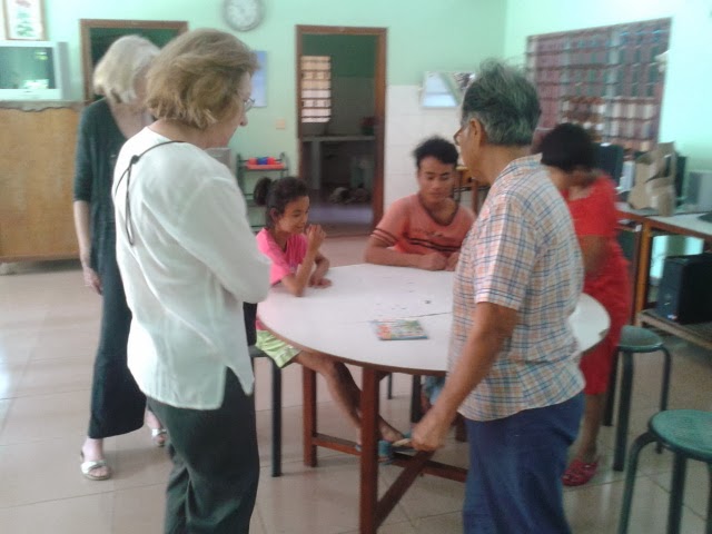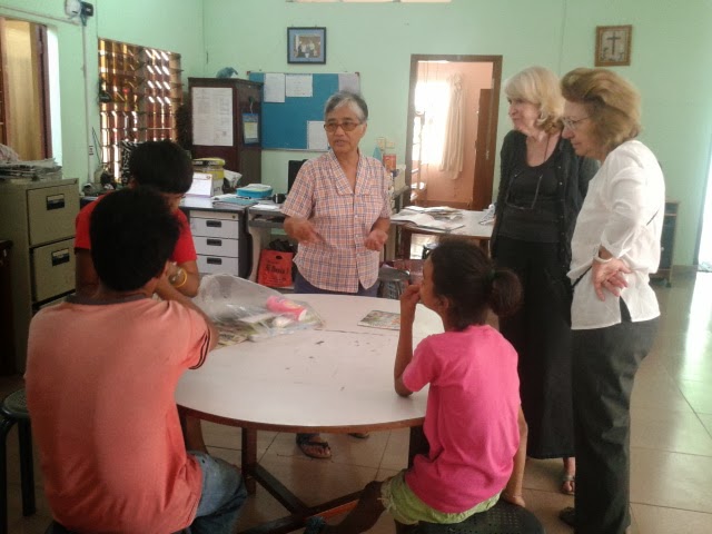 Isabelle et Elaine ont tenu, comme à chacune de nos visites, à aller voir Apsara et Sopichasa, nos filleules qui sont accueillies par le centre Light of Mercy Home tenu par la formidable sœur Adelphe, puisque ces deux jeunes filles lourdement handicapées nécessitent un encadrement très spécialisé.