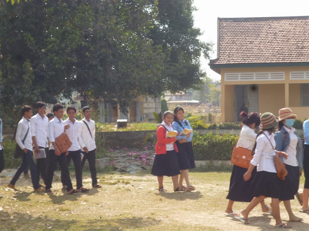 Les locaux sont plutôt bien tenus et les effectifs autour de 40 par classe, ce qui n'est pas énorme au Cambodge.