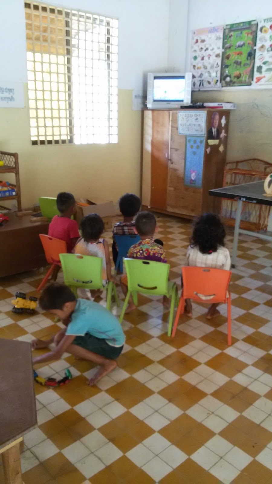 Dernièrement Sambath nous a demandé si nous étions d'accord pour acheter une TV destinée aux plus jeunes du Centre. Nous avons accédé à sa demande, d'autant que cette télé est surtout destinée à lire des DVD de dessins animés. La voilà installée dans la salle de jeux sous la surveillance d'une nounou et Sambath nous dit que cette nouvelle distraction est très appréciée, ce dont on ne doute pas!