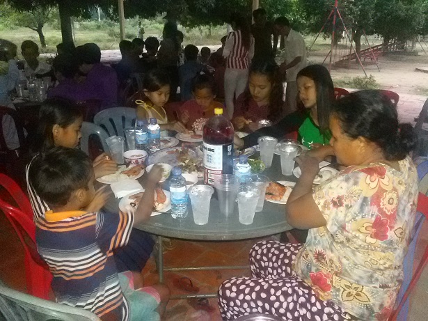 Comme chaque année, Noël est l'occasion pour Marelle Wochicam d'organiser une fête pour les enfants et le personnel du Centre Khmer Franco-Hongrois. 40 personnes et enfants se sont donc retrouvés à partir de 18 heures, le 22 décembre, autour d'un repas de fête. Sambath s'est occupé du menu avec le directeur : fruits de mer, poisson et poulet...que les cuisinières ont préparés.